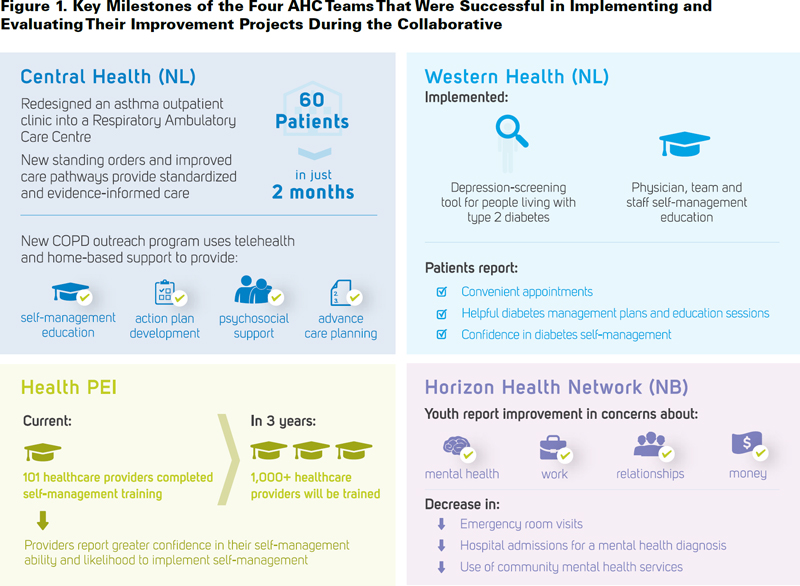 As the lead authors indicate, improvement takes time, often outlasting the timeline of a collaborative (Verma et al. 2016). Many of these teams are now enrolled in other CFHI collaboratives or quality improvement programs in order to continue their improvement journeys. That is the case for the two Health PEI teams, for example, with one now enrolled in an international Triple Aim program offered by IHI in partnership with CFHI – the Better Health and Lower Costs Collaborative for Patients with Complex Needs collaborative – with the other enrolled in a pan-Canadian CFHI spread collaborative – the INSPIRED Approaches to COPD collaborative.